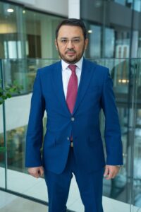 Окончил University of Nottingham в 2003 году по специальности «Экономика». В 2020 году завершил обучение по программе «Деловое администрирование для руководителей» в Nazarbayev University.